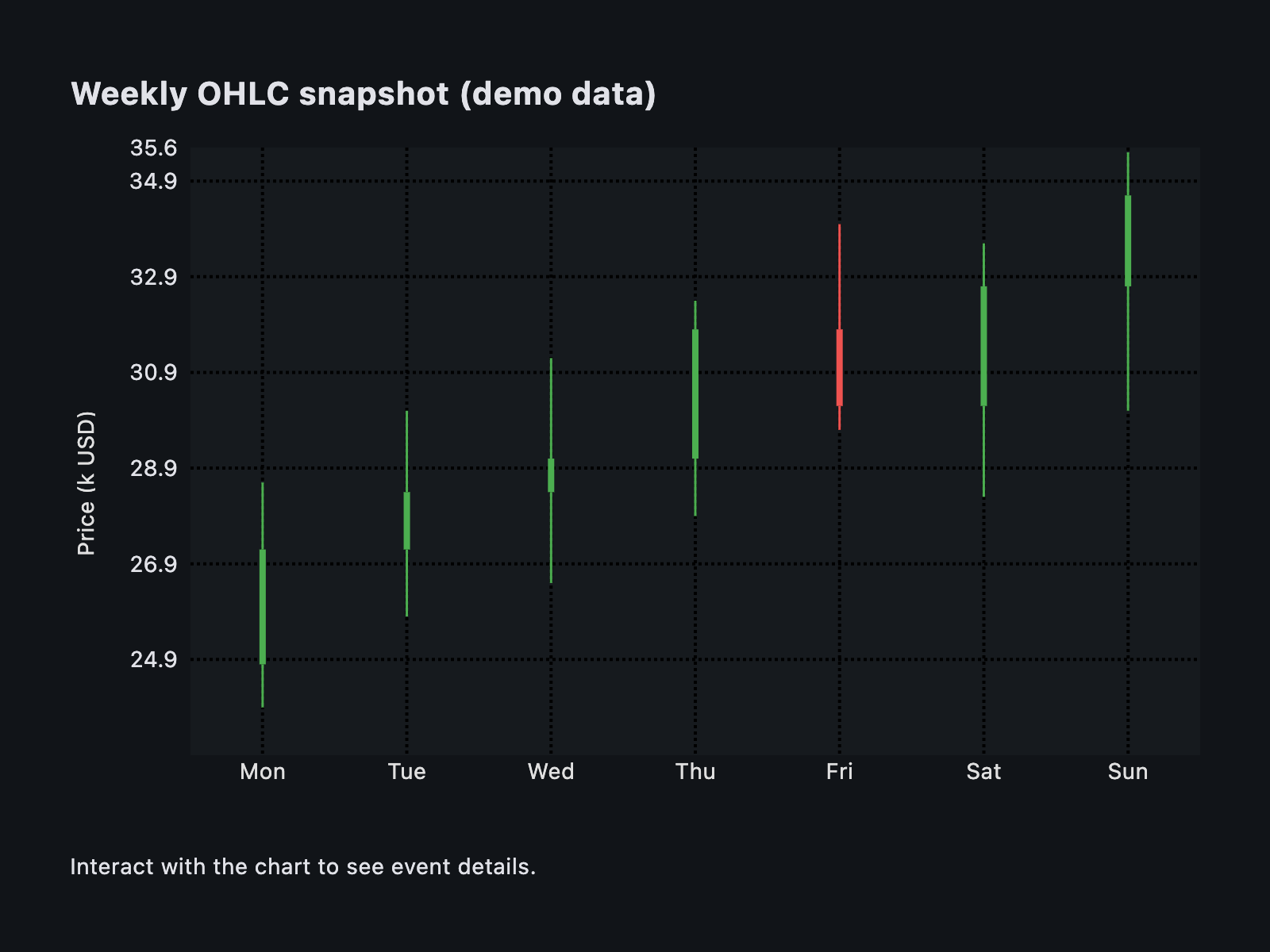 "Weekly OHLC snapshot (demo data)",